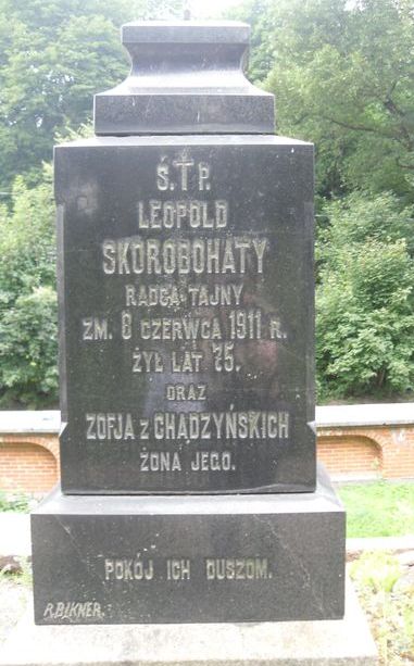 1) Ś. + P. / LEOPOLD / SKOROBOHATY / RADCA TAJNY / ZM. 8 CZERWCA 1911 R. / ŻYŁ LAT 75. / ORAZ / ZOFJA z CHĄDZYŃSKICH / ŻONA JEGO. //.